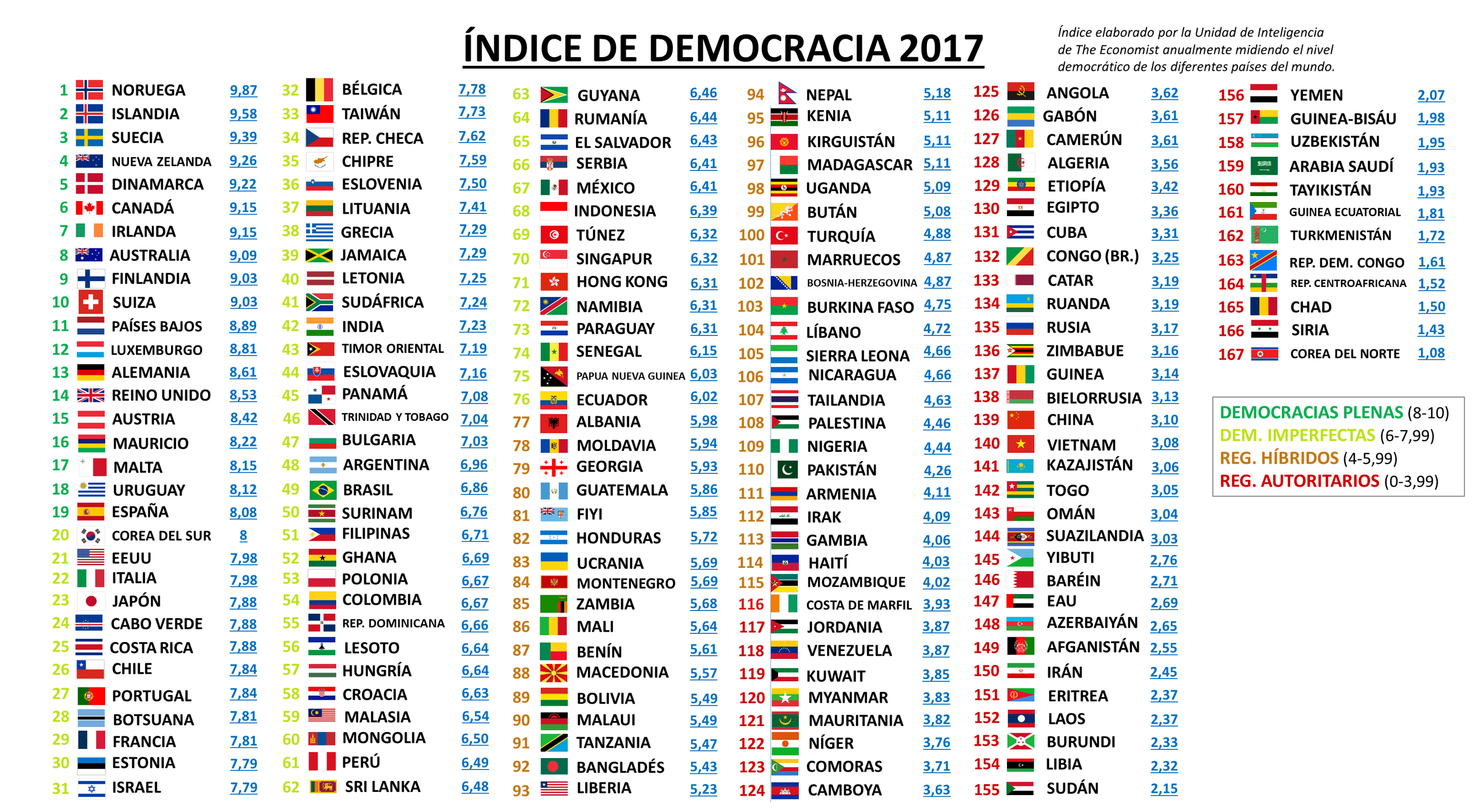 investigación sobre “la calidad democrática de los países del mundo”. Para ello
